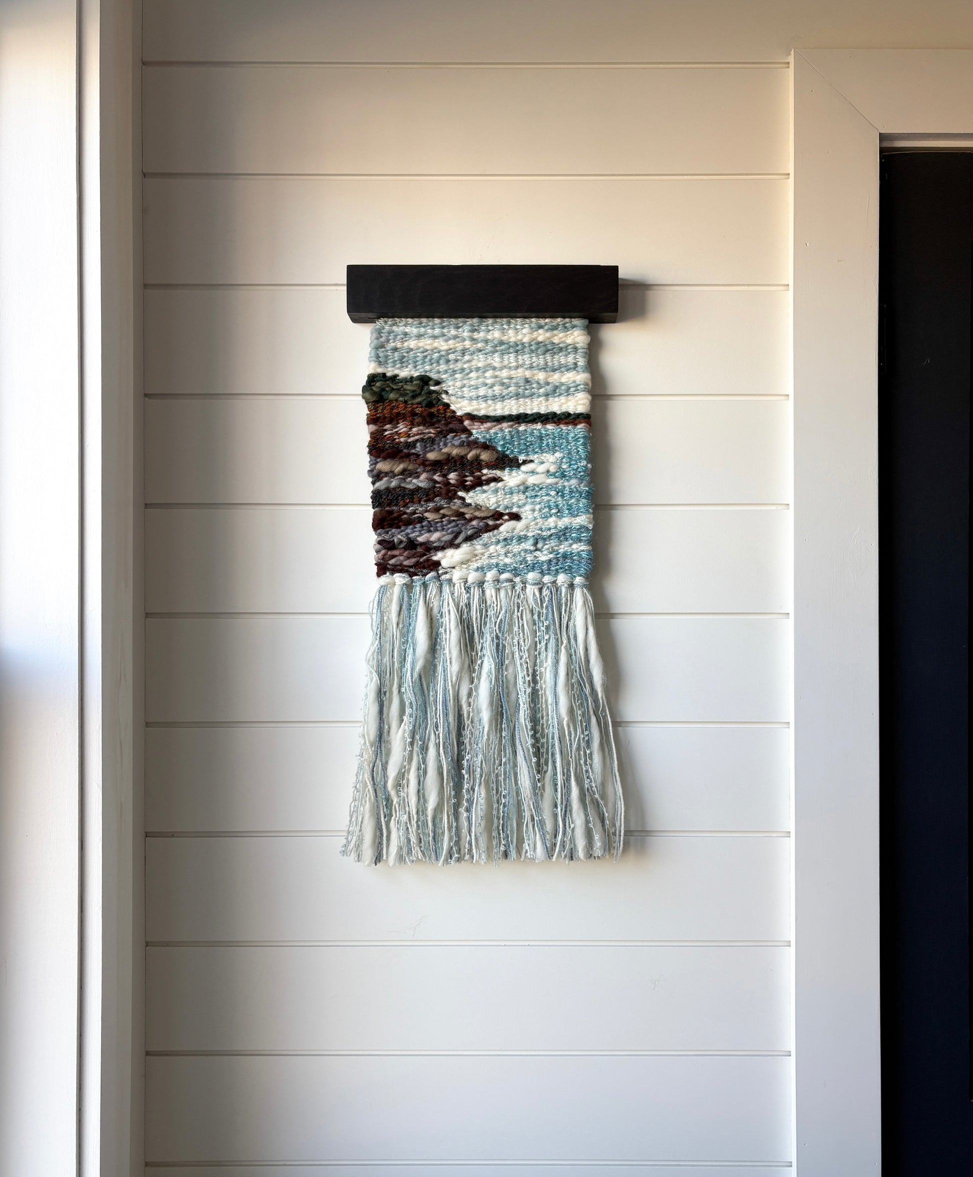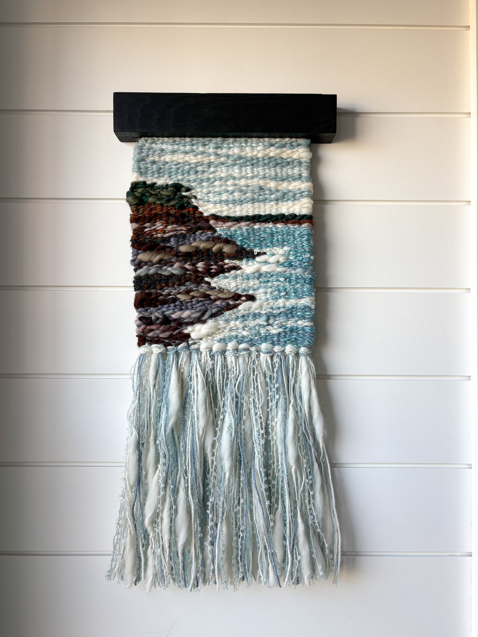 Handwoven tapestry of a Gaff Point trail look off designed and created by Lunenburg textile artist, Mary Anne Donovan.